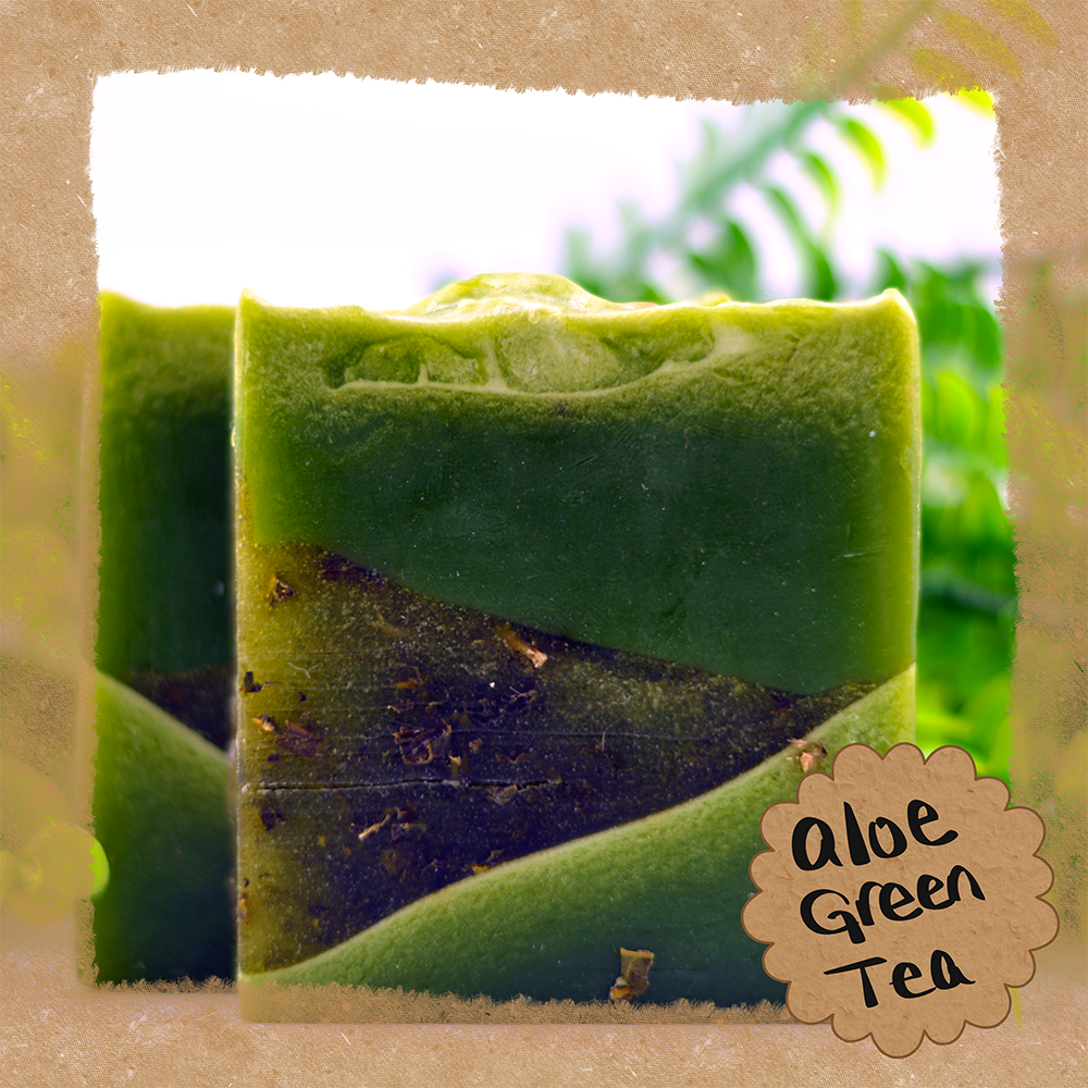Aloe Green Tea soap is handcrafted using all-natural clear glycerin base with pure green tea leaves and real aloe hand-harvested in our own garden, this soap is gentle on even the most sensitive skin.