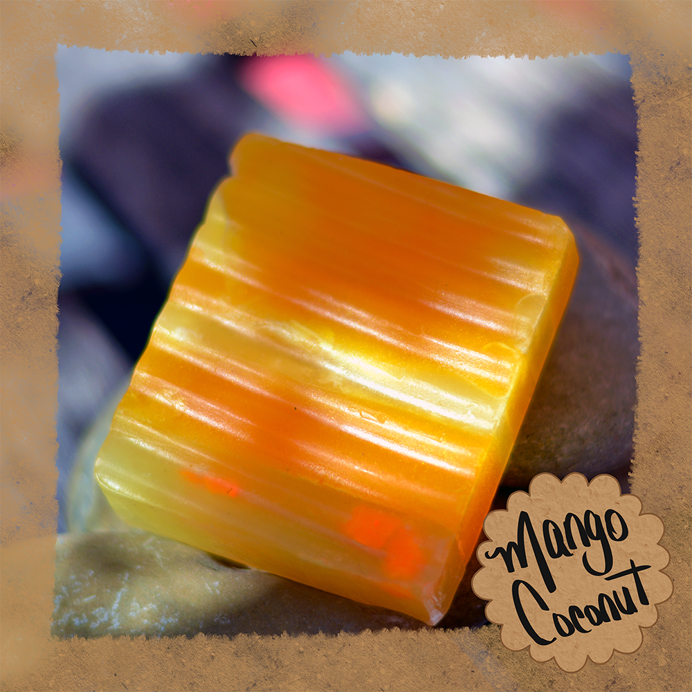 Mango Coconut soap is handcrafted with all-natural coconut oil, clear base, and pure mango essential oils that will make your skin as happy as your nose.